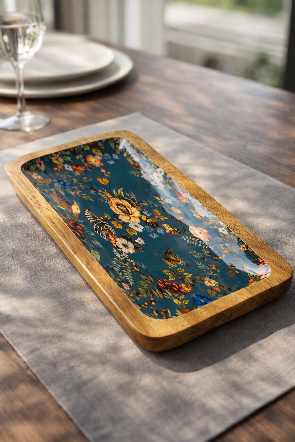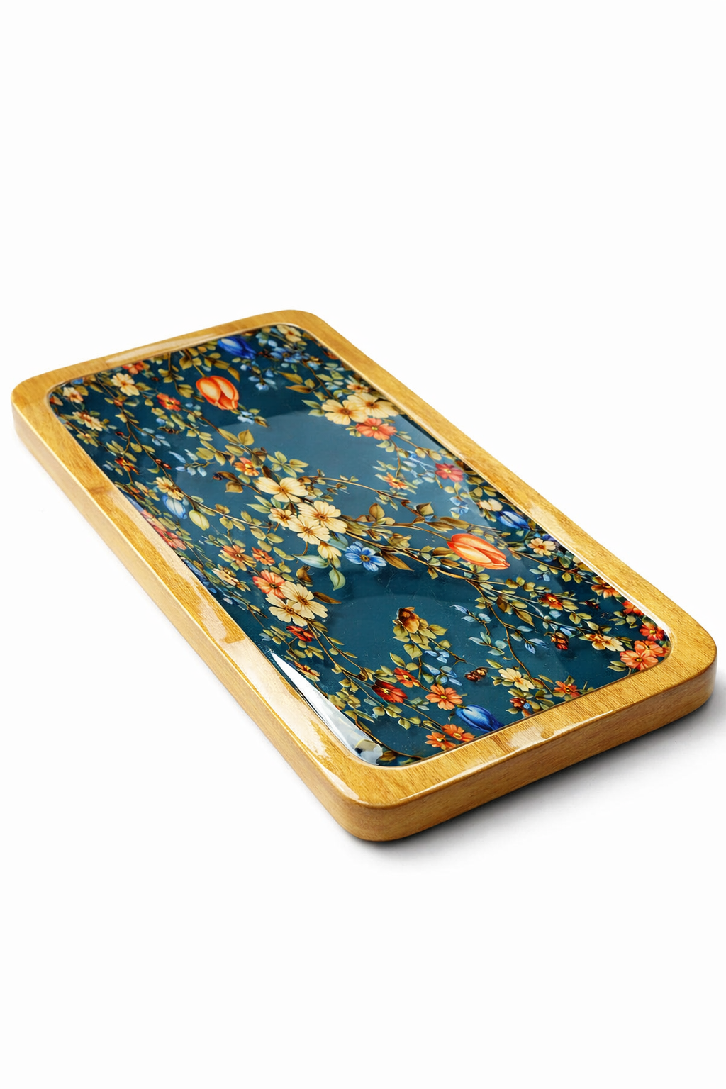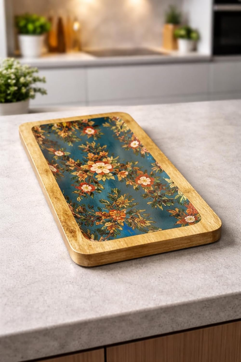 Add elegance and functionality to your dining experience with the ZS Collection Wooden Serving Platter with Floral Resin Design. Crafted from high-quality natural wood, this beautifully designed rectangular platter features a vibrant floral resin artwork that creates a unique and stylish serving piece. The combination of warm wood texture and colorful floral design makes it perfect for both serving and home décor. Designed for everyday convenience, this platter is ideal for serving snacks, fruits, desserts, appetizers, tea, coffee, and small dishes. Its smooth surface and sturdy wooden frame provide durability while maintaining a premium and decorative appearance.